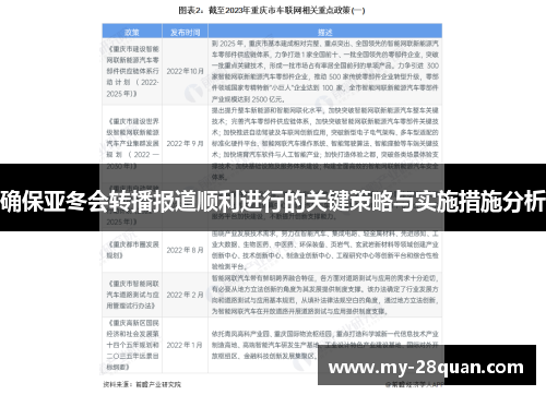 文章摘要:本文旨在分析确保亚冬会转播报道顺利进行的关键策略与实施措施。亚冬会作为国际性冬季运动盛会,其转播的顺畅进行不仅能够展现赛事的精彩,还能为全球观众提供高质量的观看体验。为了确保转播效果的最大化,本篇文章从四个关键方面进行详细阐述。首先,明确转播的技术保障措施,包括网络技术、设备更新和现场技术人员的调配。其次,探讨赛事内容的策划和预判工作,确保内容的精准传递和节目的吸引力。第三,强调媒体合作与传播渠道的多元化,力求达到更广泛的受众覆盖。最后,关注赛事期间的应急管理与预案设计,确保突发状况得到及时处理,避免影响整体转播。通过这些策略的实施,可以确保亚冬会转播报道的顺利进行,最大限度地提升赛事的全球影响力。